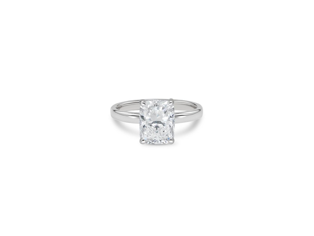 Veliký diamant v brusu radiant je synonymem pro moderní luxus a na tomto je navíc lemovaný řadou kulatých briliantů, které jeho třpyt ještě umocňují. Čisté linie a výrazný třpyt činí tento šperk opravdu neodolatelným.